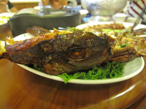 將雲南特製香料包進魚內..在一起油炸酥脆讓香料與魚肉充分的結合