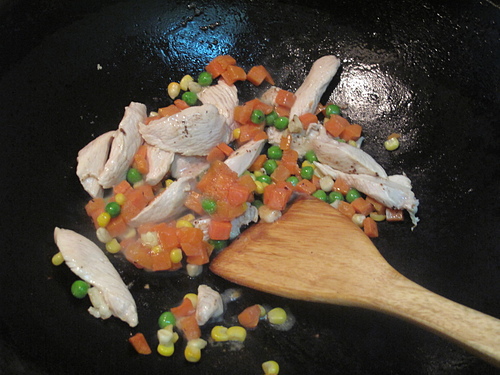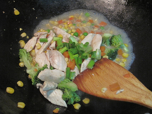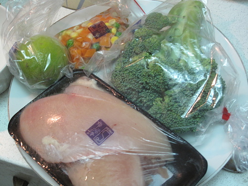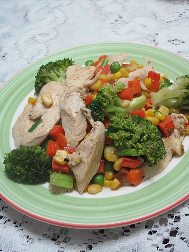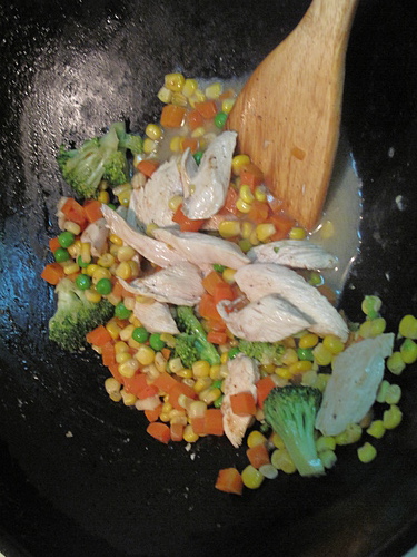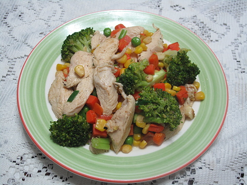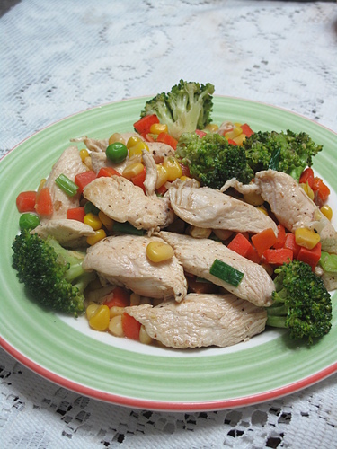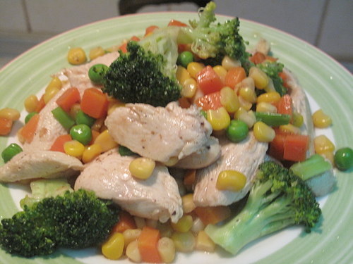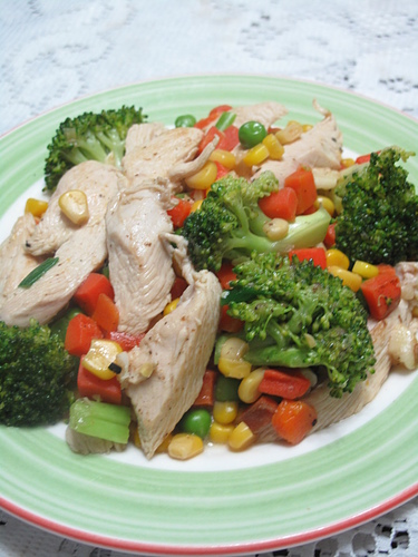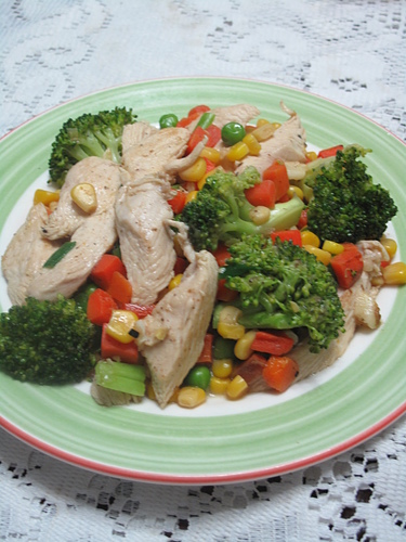 食材:300g cas雞胸肉切片..1/2個花椰花切成小朵..200g三色蔬菜