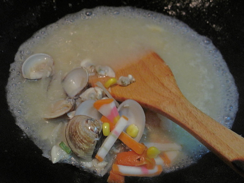 洋蔥粒..魚板.. 紅蘿蔔絲..玉米粒..葱蒜少許.