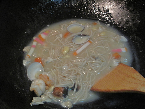起油鍋.. 爆香蒜頭.. 把所有的料炒熟..調味.太白粉水芶薄芡