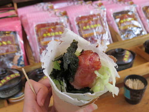 現點現做的手捲香腸...一靠近就聞到香氣囉