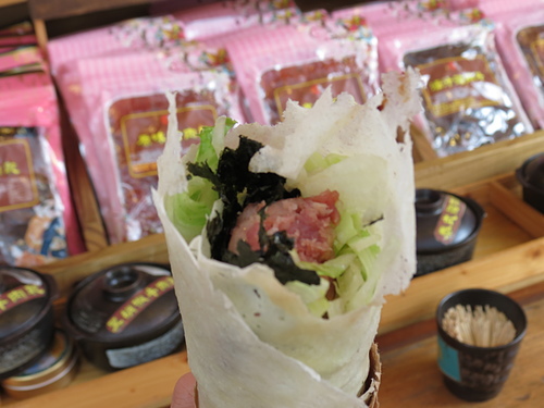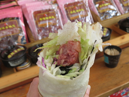 「手捲香腸」原是是用潤餅皮也代替手捲