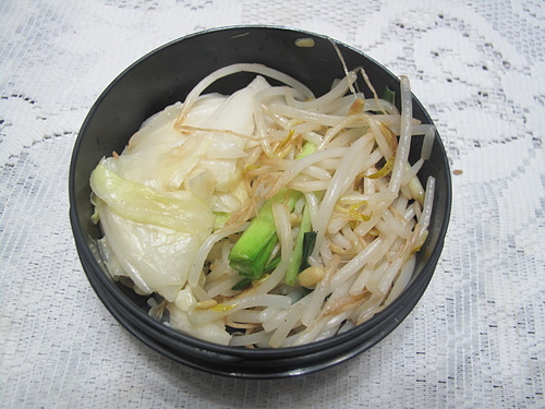 最近青菜都是寶貝自己炒的~~炒高麗菜與蒜炒豆芽菜