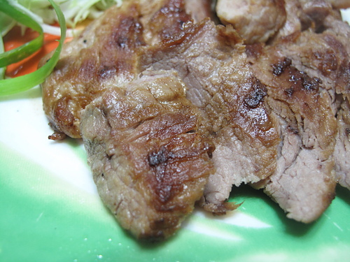 煎得略恰的外皮加上松坂豬帶油質的口感~十足Q彈有咬勁