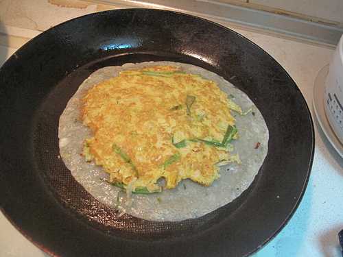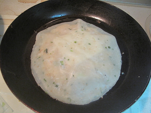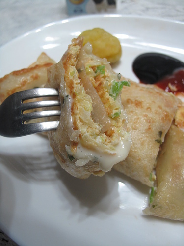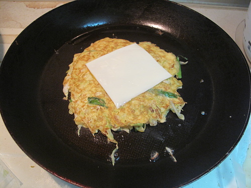 再蓋上蛋餅皮~利用起士將內餡與蛋餅皮結合