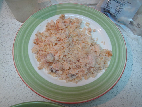 都把自己冷凍好熟的鮭魚肉拌炒一下
