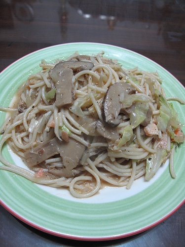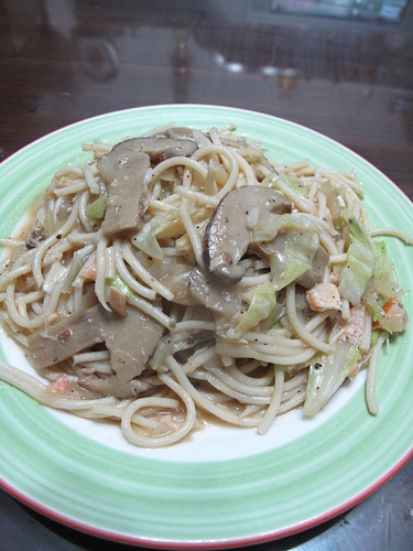 所以哩~今天就來個鮭魚磨菇義大利麵吧