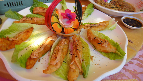 炸鮮魚~包著生菜與沙拉~同樣是好吃到不行~
