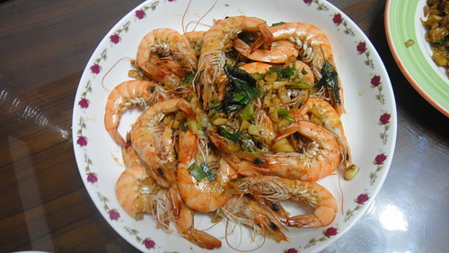 蒜頭蝦~^^親家公的辛苦養殖的甜蝦~讓寶貝跟我吃的超開心哩~