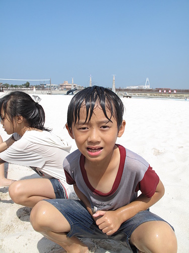 都那麼大的寶貝遇到水跟沙還是像小小寶貝一樣~