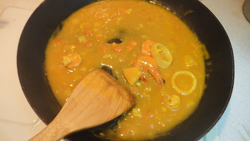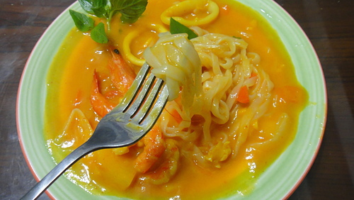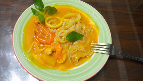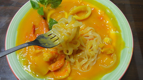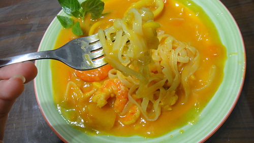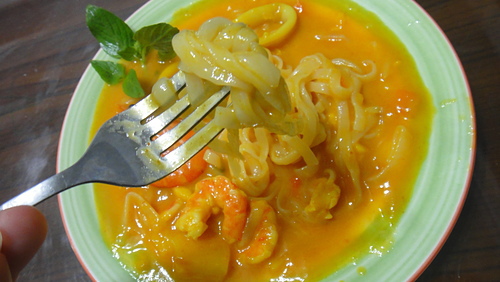 ^^晚餐上菜~~南洋海鮮咖哩蒟蒻麵