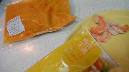材料:南洋咖哩海鮮醬~纖食纖盈蒟蒻麵*1包..甜蝦數尾