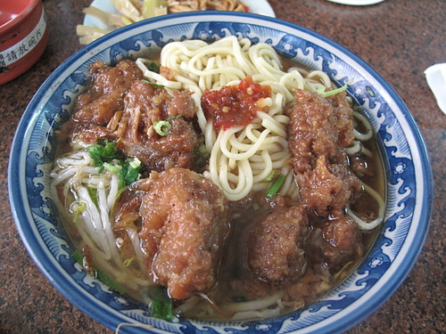 店名叫清水排骨麵~但不是指店開在清水或是清水名產~