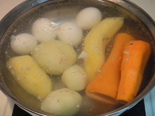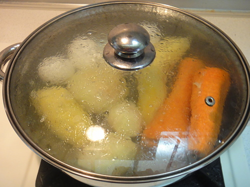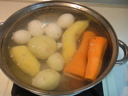 用筷子插紅蘿蔔~有透就可以全部拿出來~~因為紅蘿蔔熟最慢~~紅蘿蔔可以插過~就表示其它也