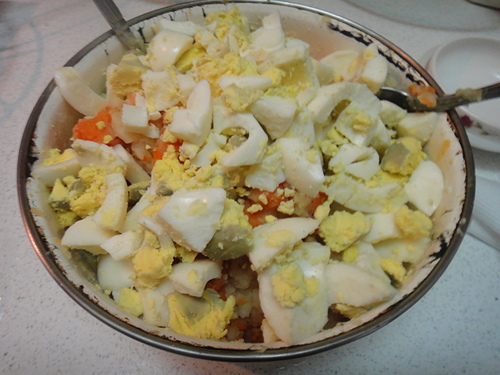 蛋也切小粒~~準備跟沙拉醬合體囉~~