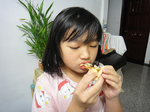 跟寶貝看新聞~~一直看到原物料要漲價~~PIZZA也會變更貴~~寶貝就說想吃PIZZA來當早餐~