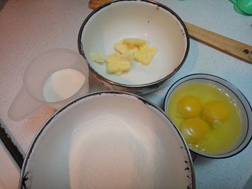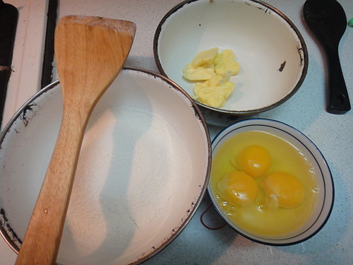 無鹽奶油50g,牛奶100g,細砂糖1/2茶匙,低筋麵粉50g,高筋麵粉20g,