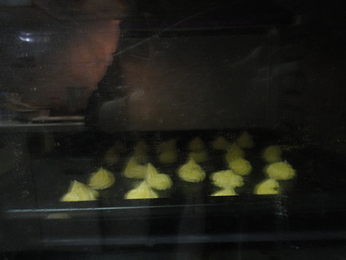 的擠出一個一個的球狀(沒有擠花袋可以用湯匙舀)