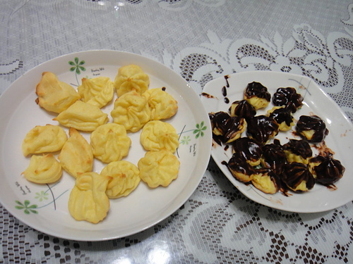 所以就挑了小泡芙來試試~~第一盤失敗~沒膨起來~~