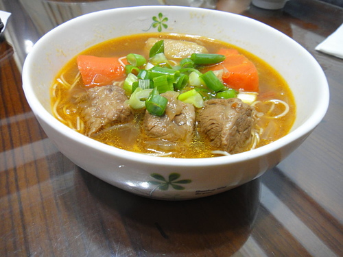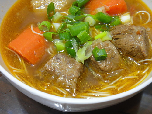 加了白蘿蔔囉~麵先煮好~~再放入熱好的牛肉湯~起鍋撒上葱花