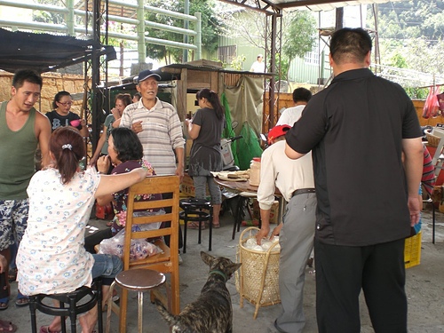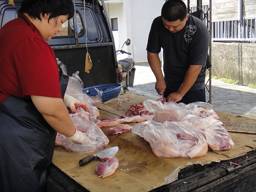 直接付錢請豬商殺好二隻全豬~然後帶上山來給大家看一下~直接再由豬商幫我們分豬肉給前來