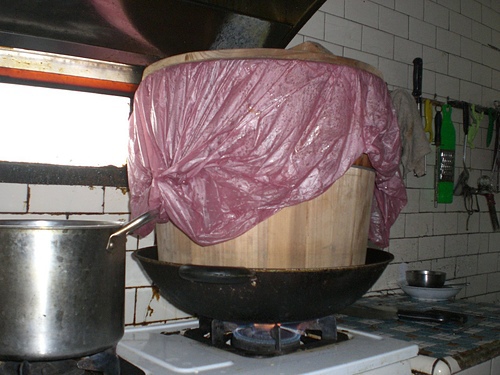 廚房一早就超忙碌..蒸糯米飯分送親人