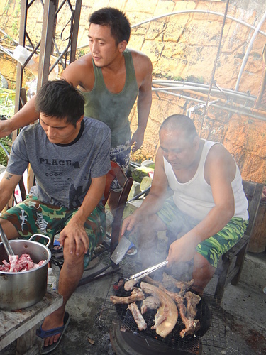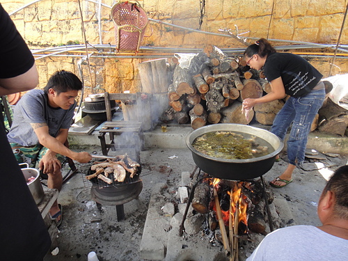 有看到吧~山上是真得升火~用木頭或竹子來煮食烤肉 ~