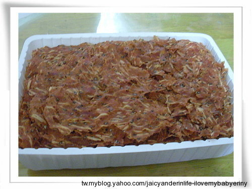 蜜汁肉干~跟寶貝去山上玩時就帶去跟山上小朋友一開封就吃完了~~