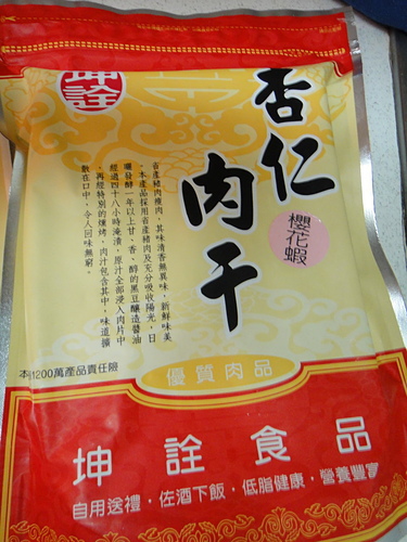 櫻花蝦杏仁肉干~~一打開有海鮮的香味喲~而且很貼心的用盒子包裝好好