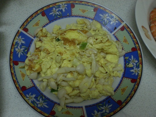 第一道美白菇起士炒蛋完成~老爺居然說是今天晚餐的第一名好吃~~