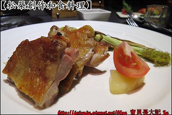 微焦皮酥的金黃色澤外層..切下雞皮時發出卡滋誘人聲響
