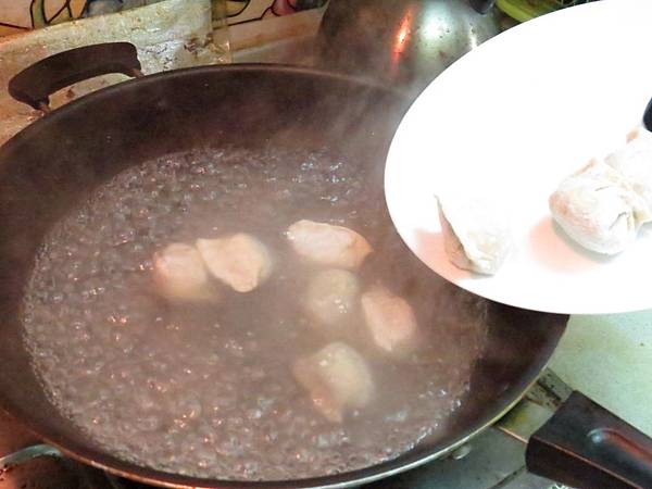 攪動水造成水波後下水餃(避免黏鍋),不要再加水也不用蓋鍋蓋