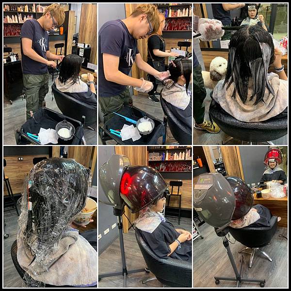 第一次藥劑均勻塗抹後讓頭髮軟化..加熱