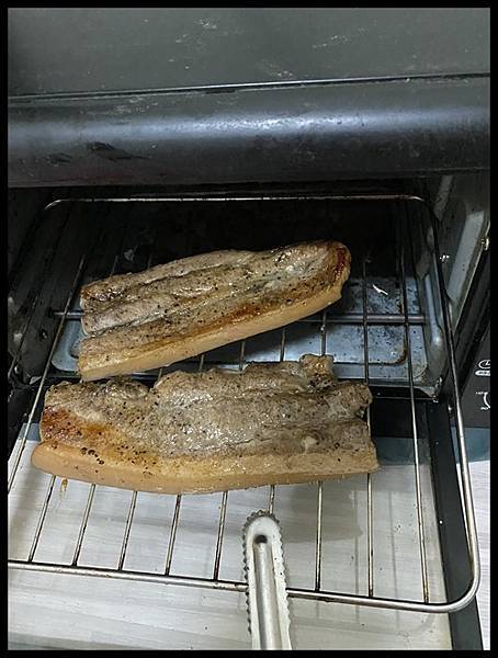 烤著油亮鹹香味十足的【大可選品】客家鹹豬肉