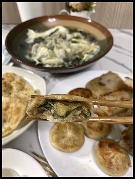 薄薄的餅皮煎的金黃焦香包裹滿滿內餡