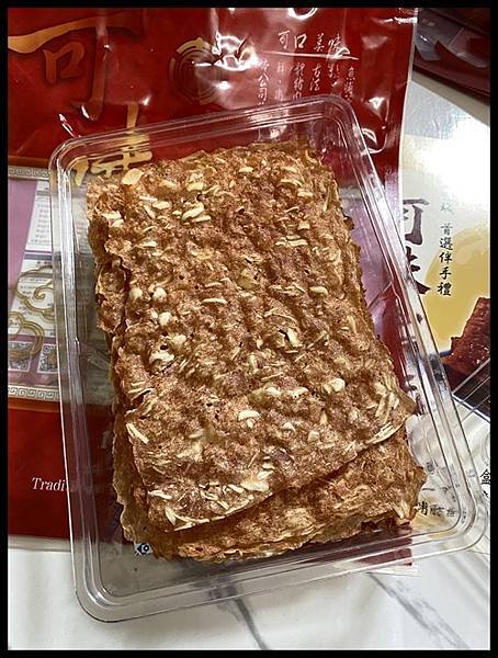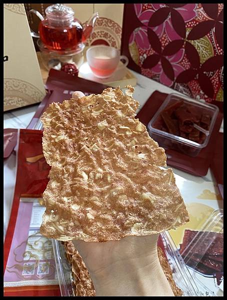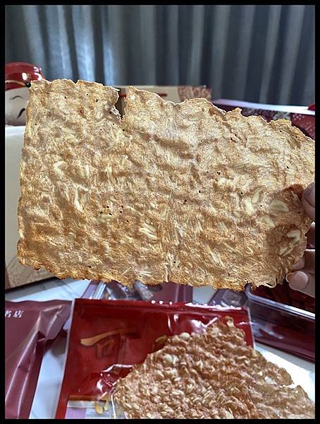 拿出來薄如蟬翼的【可味肉乾】卡脆杏仁肉紙