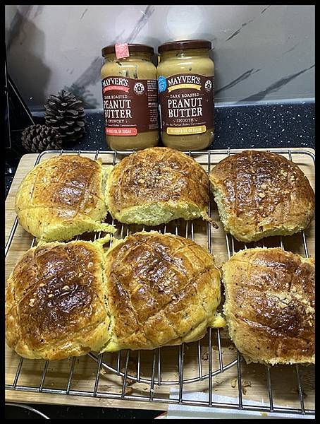 尤其最愛的菠蘿麵包夾入花生醬餡料