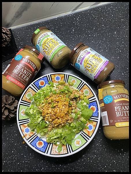 葱末香菜蒜頭..白醋醬油【Mayver's】澳洲無糖超級堅果醬 適量..