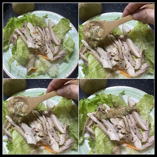 胡麻堅果醬汁濃郁味道與清爽的雞胸里肌肉