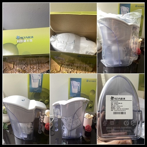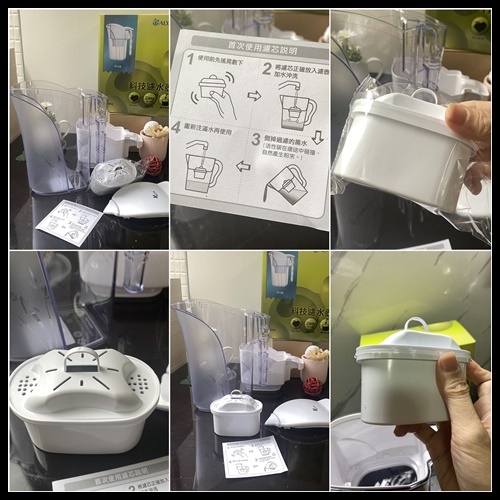 濾水壺SAN(壺身)、ABS(壺蓋)、濾芯1只、與使用說明小卡