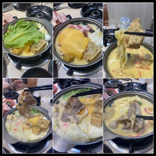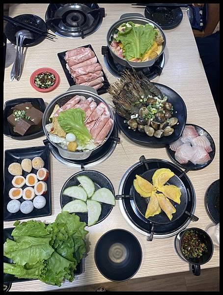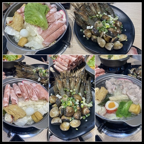 有海鮮、有蔬菜、有肉片與多種火鍋料