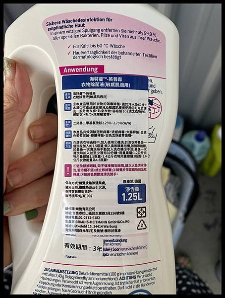 2.手洗:最後一次清洗時依照衣物量加入,如需良好除菌效果建議浸泡30分鐘