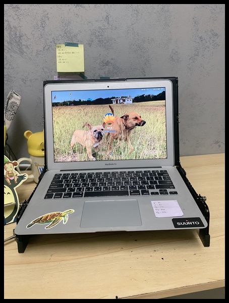 之前的電腦支架還是在越南工作時辦公室小妹送的