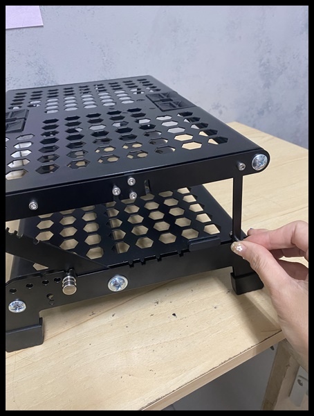 移動左右的鎖扣與移動支撐架去做調整支撐