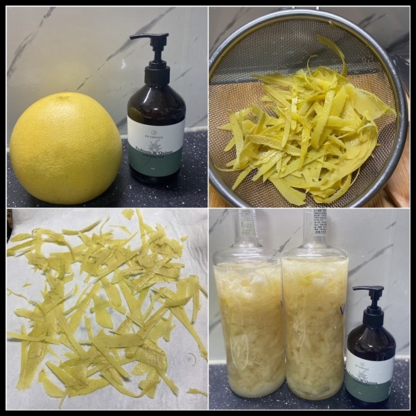 要取一點白柚的皮放進去,當然要先大白柚洗個乾淨
