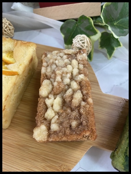 減糖的磅蛋糕體搭配上層甜甜的奶酥顆粒