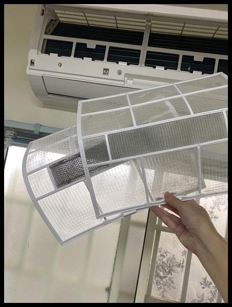 拆下冷氣濾網,趁著冷氣保養時順將濾網拿去清洗