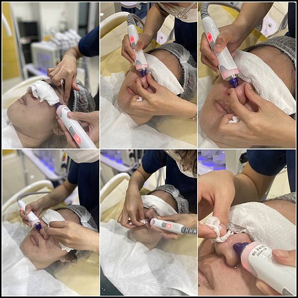 再使用鏟皮機利用超聲波震動去除老廢角質和較頑固的黑頭粉刺