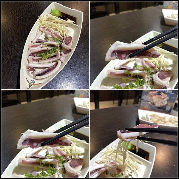 魷魚鮮Q柔順又勁道,搭配薑絲芥末醬油一起吃更是一絕