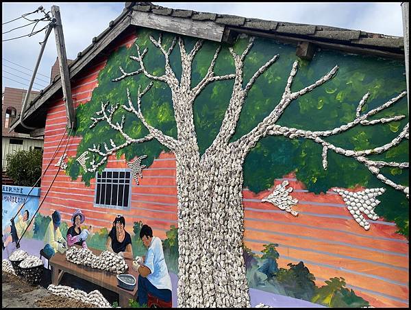 口湖鄉蚵寮村蚵寮學堂更是將廢棄的蚵貝、蛤貝、螺殼創造成蚵殼藝術牆